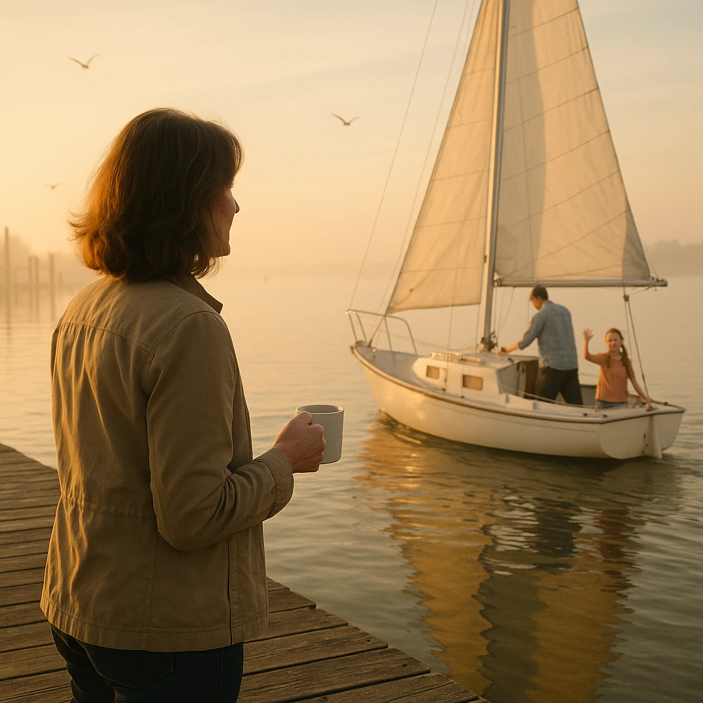 The sailboat drifted away from the dock, white against the green water. Margaret raised her hand to wave. Emily waved back until she became a speck, then disappeared behind the mouth of the harbor.