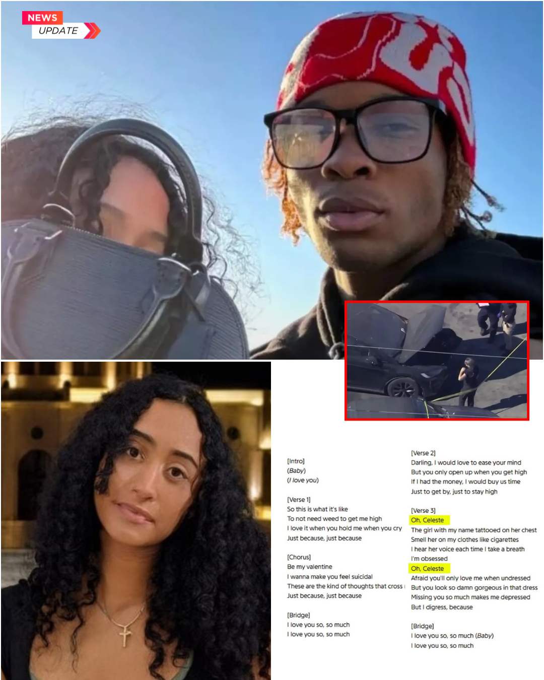 The leaked song recorded in December 2023 – just 4 months before Celeste’s disappearance – contains lyrics that are impossibly specific: