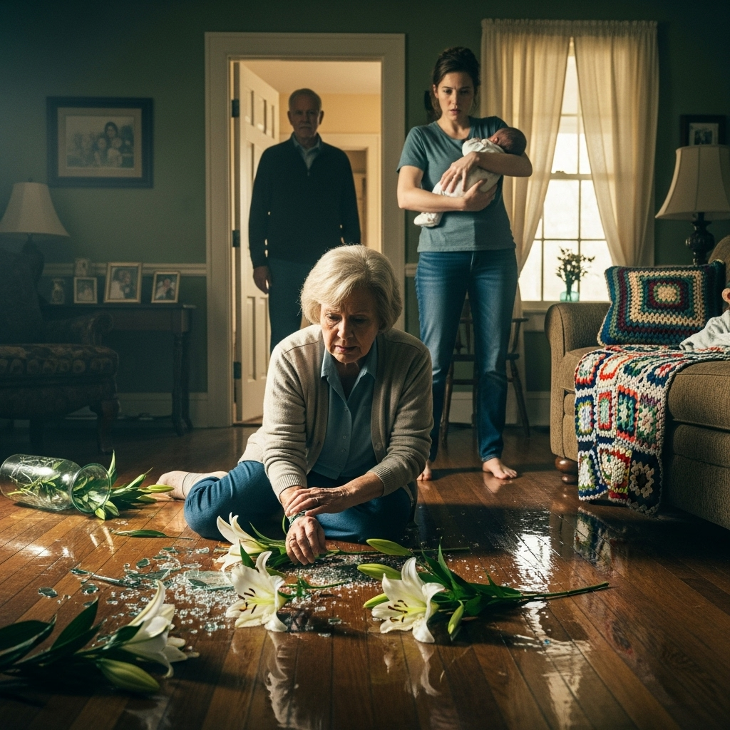 Martha woke early to arrange flowers, humming an old Patsy Cline tune. The air smelled like coffee and wet soil. The baby had been born just a week earlier, and the house carried that new, fragile energy — sleeplessness, soft cries, bottles clinking in the sink.