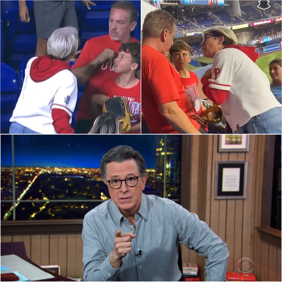 The lasting image wasn’t the baseball, or the boy, or even the woman’s grasping hand. It was Colbert, eyes locked on the camera, his voice flat and final.