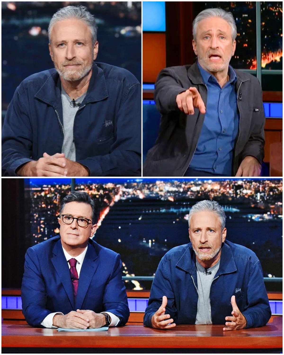 Jon Stewart, the legendary satirist who redefined political comedy for a generation, is not known for empty threats. So when word leaked of his “deadly ultimatum”—“Buy me a coffin if you want silence!”—the entertainment world sat up and took notice. This wasn’t just a clever quip. It was a declaration of war. And as Stewart sharpened his pen, another familiar figure emerged from the shadows: Stephen Colbert, his longtime friend and late-night rival, whose laughter now echoes through executive suites like a warning bell.