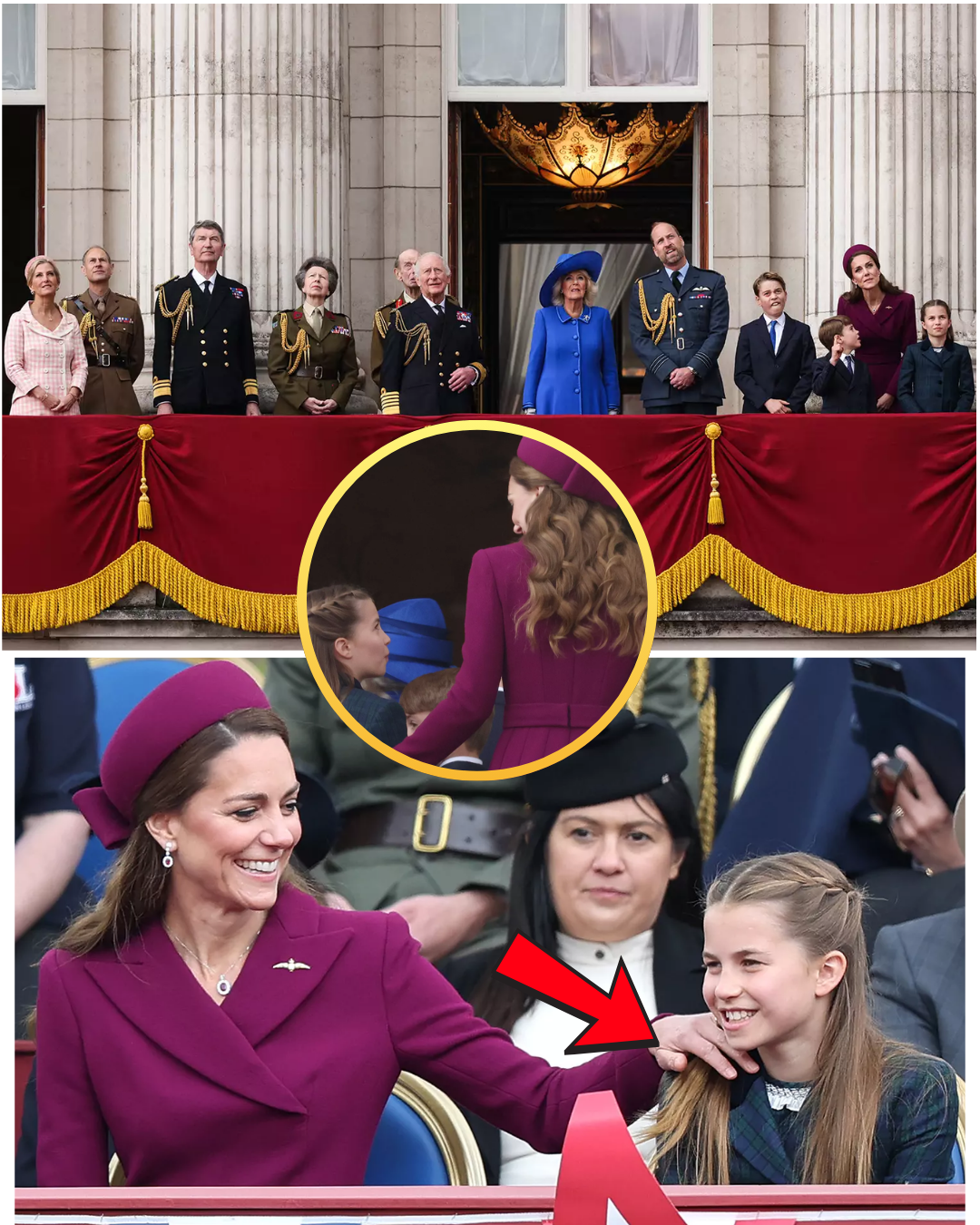 Another moment captured by the cameras touched the hearts of fans worldwide. It was when Princess Kate reached out to gently readjust Princess Charlotte’s hair, which she wore in her favorite long braid. This small, tender gesture was not just a mother’s care for her daughter, but also a profoundly symbolic act. It showed that no matter her exalted position, Kate is an ordinary mother who always wants to protect and nurture her child, and it embodied the closeness and warmth that the Royal Family is working to build.
