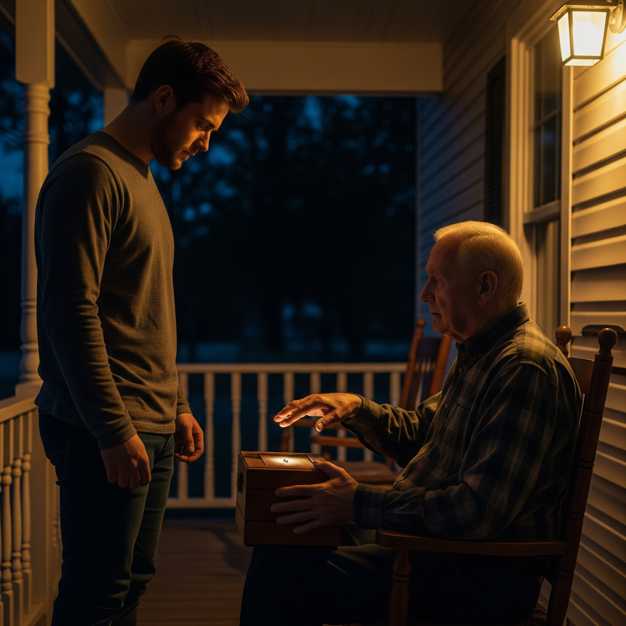 In the truck I sat for a minute, hands on the wheel, the way you do after funerals and weddings and hospital discharges—occasions where your heart needs a head start. Through the glass I could see his shadow settle into the chair. The porch light threw a path down the steps to the walk, a small runway in a town that didn’t launch much.